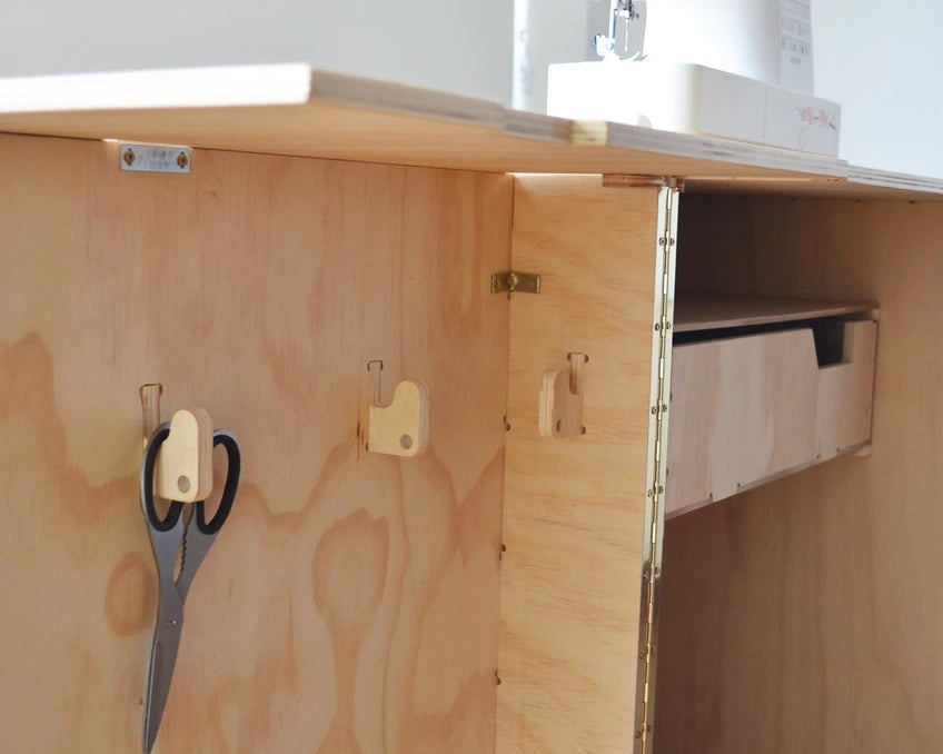Ideal para quienes necesitan optimizar espacios sin renunciar a la funcionalidad. Cerrado, actúa como un módulo de guardado compacto; abierto, se convierte en un escritorio cómodo para coser, trabajar o crear.