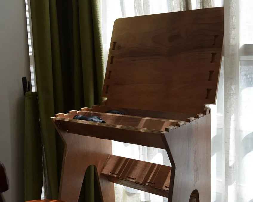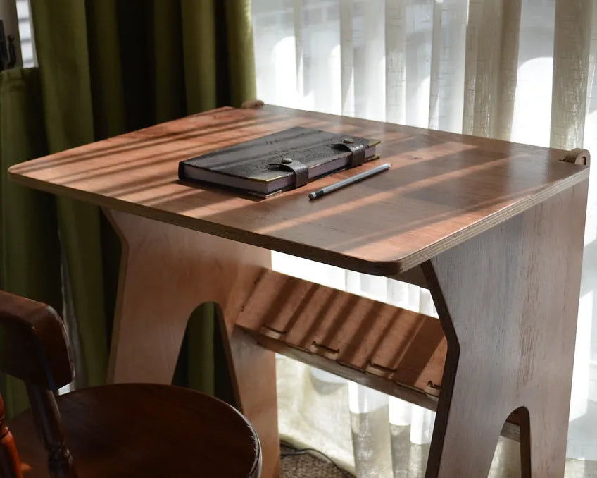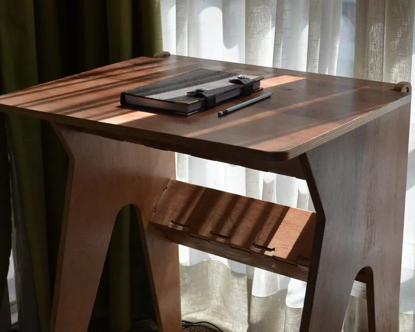 Inspirado en los escritorios de antaño, el Escritorio K combina tradición y modernidad. Su cubierta abatible y sus dos compartimentos interiores ofrecen funcionalidad y organización, mientras que la precisión de la carpintería digital (corte con router CNC) asegura un ensamblaje perfecto y un acabado cuidado. Un diseño simple, funcional y con carácter, pensado para espacios contemporáneos.