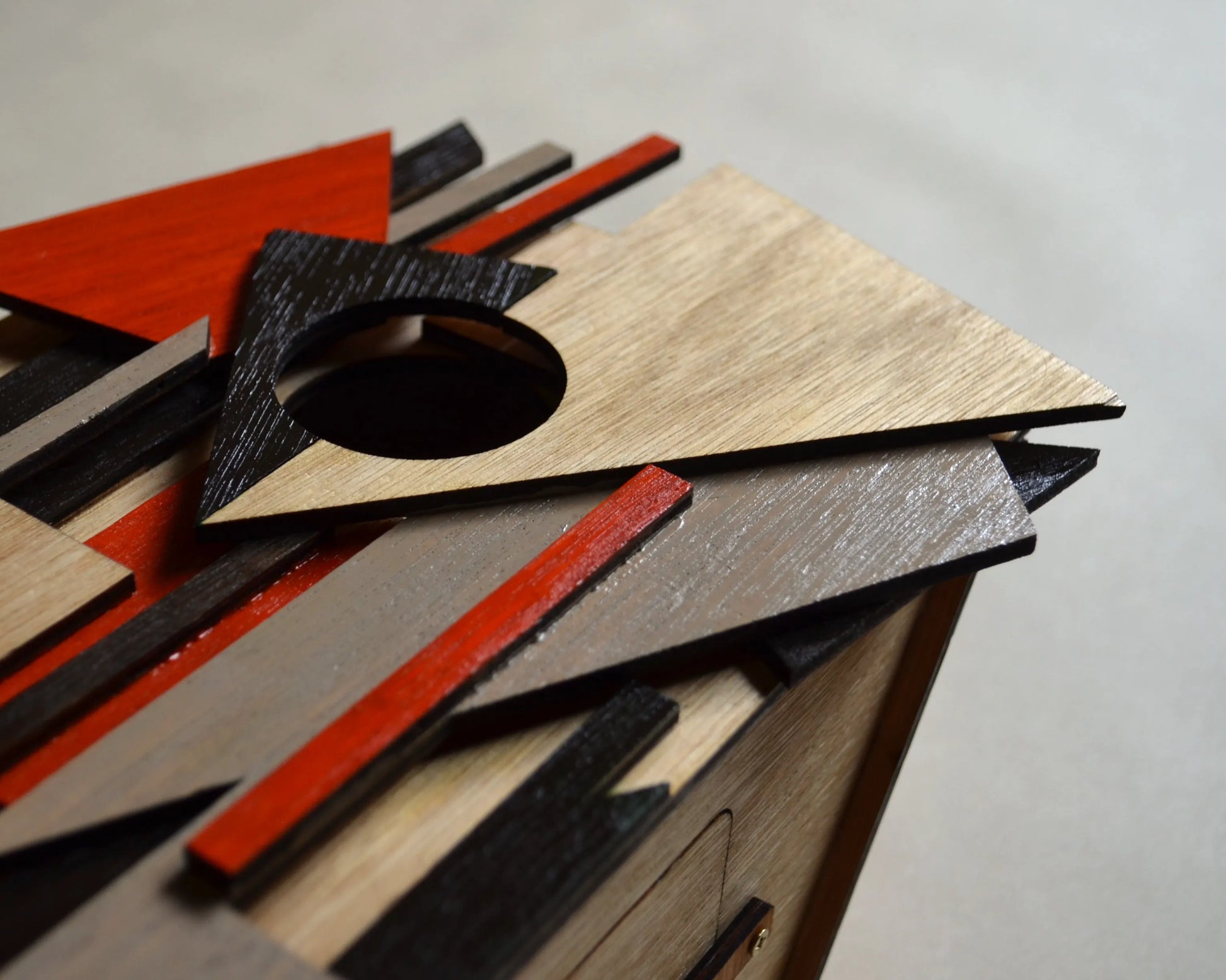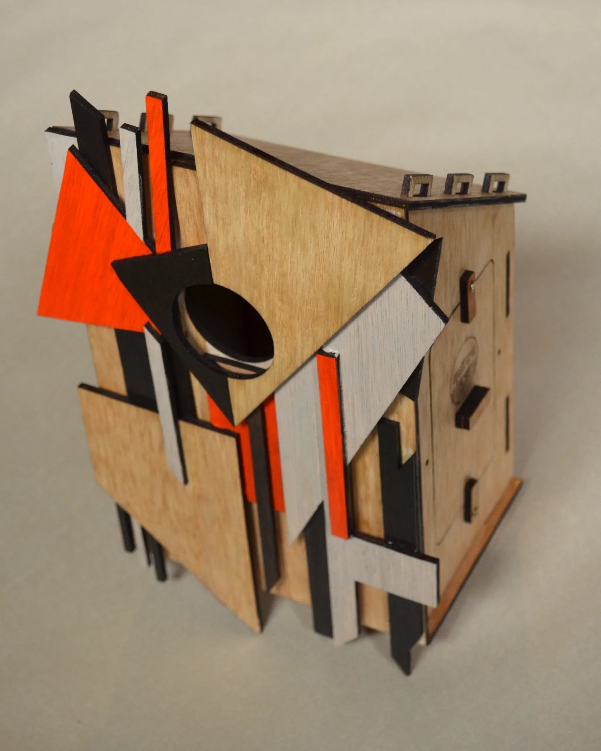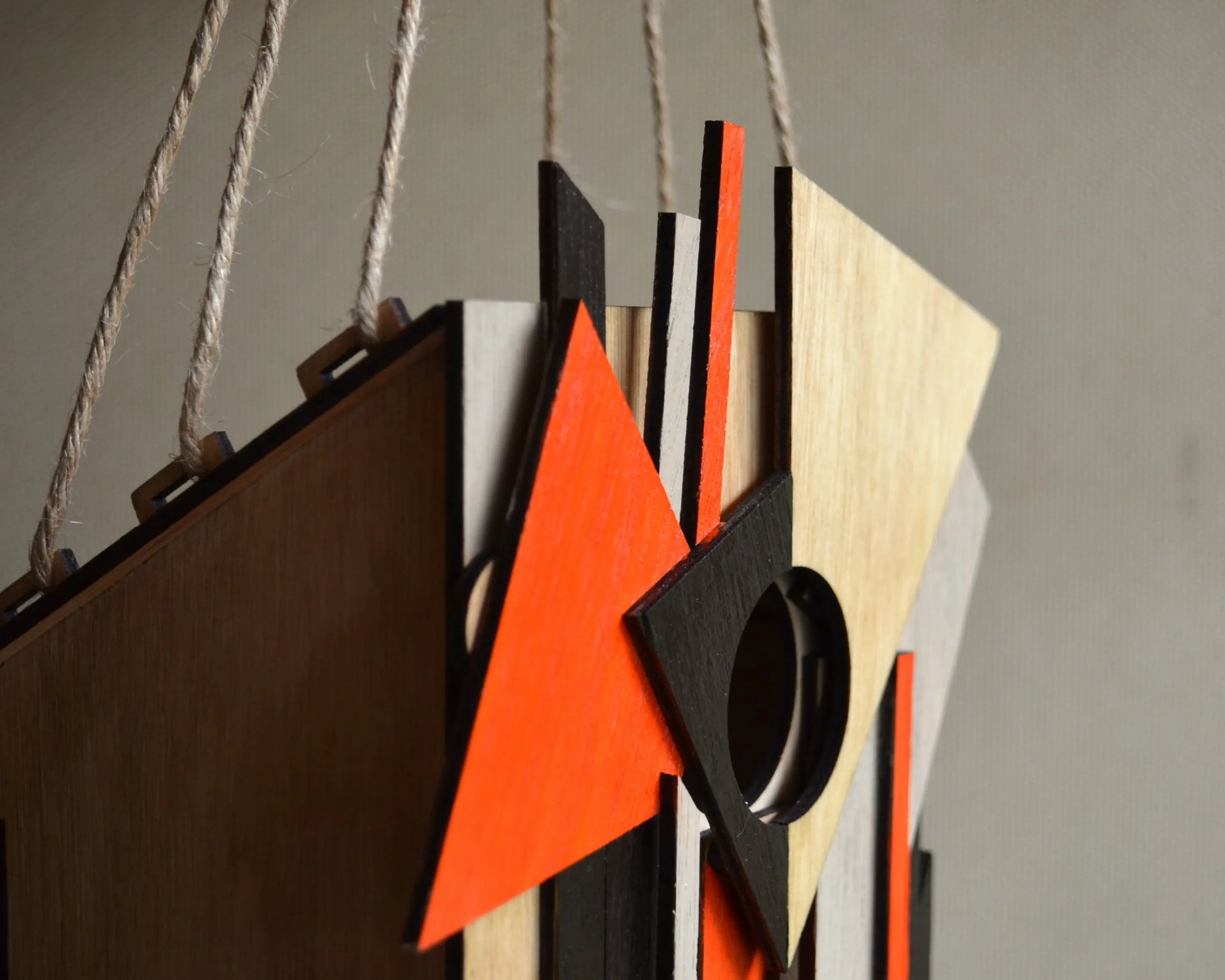 Material: Terciado de eucalipto, corte láser, pintado y sellado a mano
