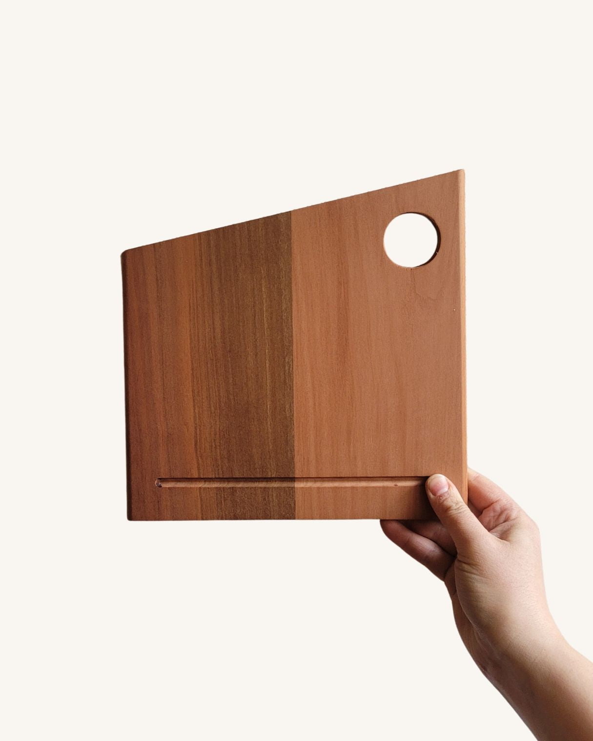 El corte diagonal es un detalle que acentúa la belleza natural de la madera y lo transforma en un objeto con carácter e identidad.