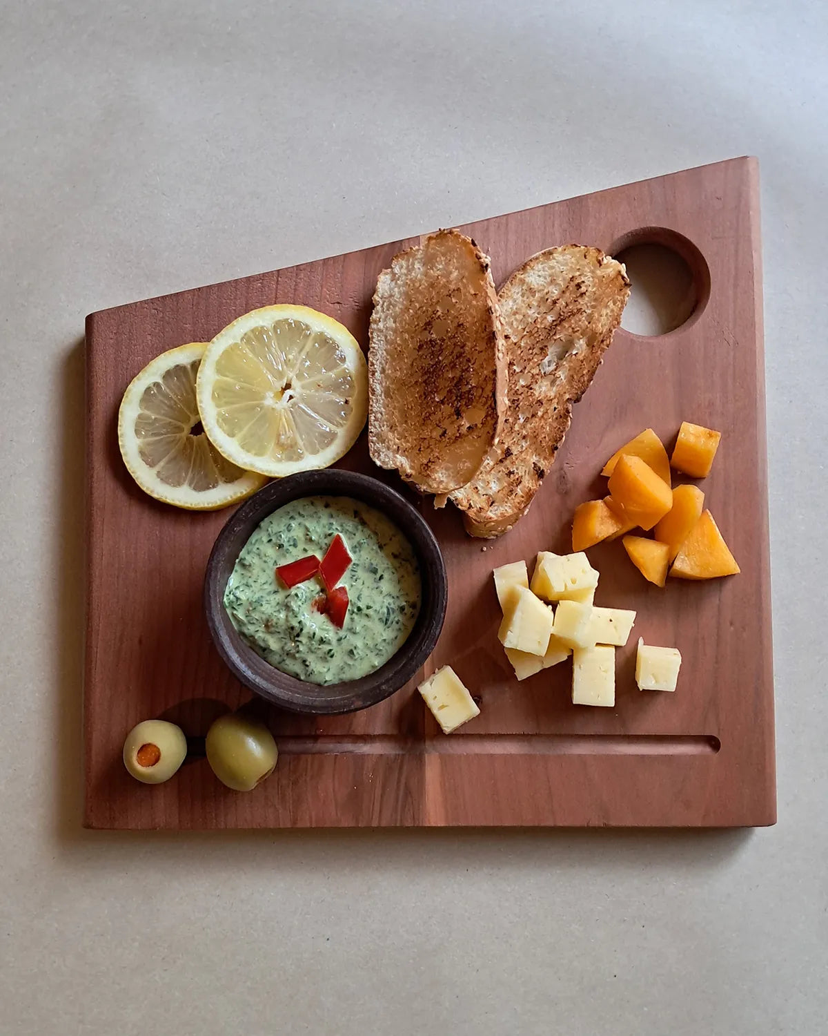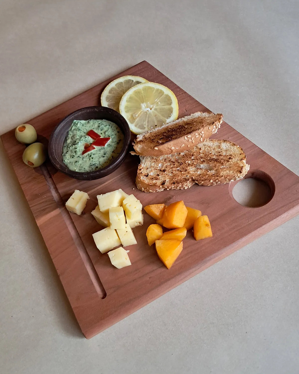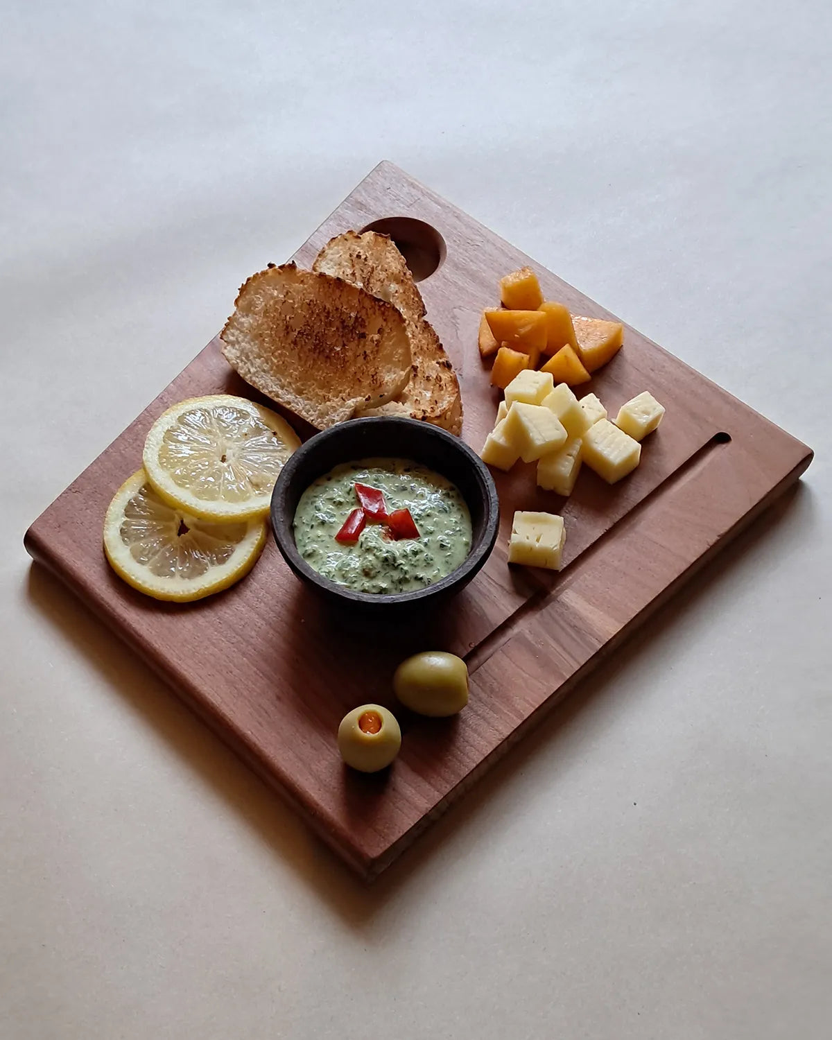 La tabla está brutal, la ocupo pa’ poner quesitos veganos y dips. Todo se ve más pro, hasta las juntas chicas parecen carrete fino