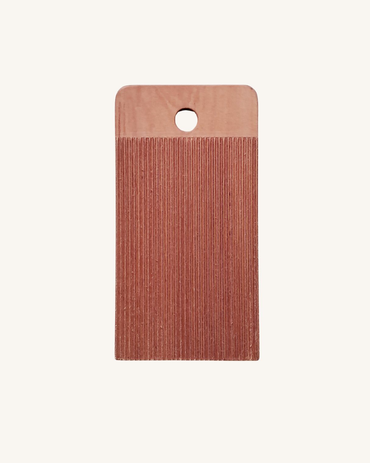 Con surcos especialmente pensados para dar forma a los ñoquis de manera uniforme y tradicional, esta tabla combina practicidad y estética. Sus formas simples resaltan lo natural de la madera, mientras que su diseño liviano y cómodo de tomar la convierte en una herramienta única, con carácter e identidad.
